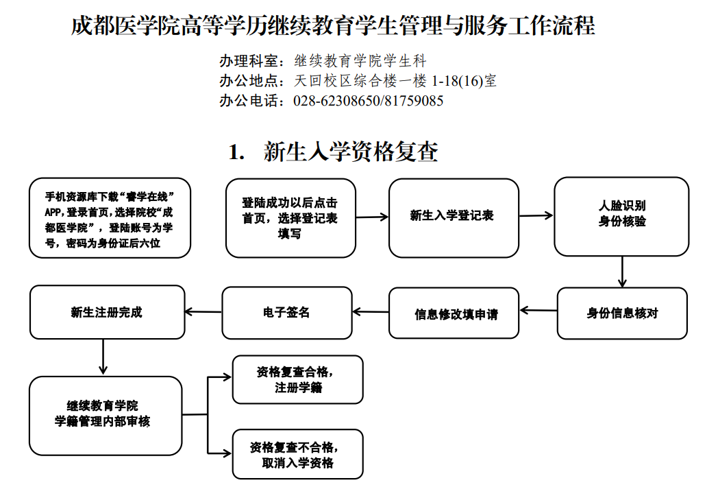 成都医学院高等学历继续教育学生管理与服务流程l图