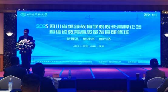 4月21日下午,由四川省普通本科高等学校教学指导委员会继续教育教学指导委员会主办,四川师范大学承办的2023四川省继续教育学院院长论坛暨继续教育高质量发展研修班在成都总府皇冠假日酒店举行,全省继续教育学院院长和相关工作人员参加论坛。我校继续教育学院院长王涛代表学校以《高等学历继续教育人才培养方案的编制与执行》为题,向论坛作主题报告。